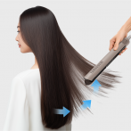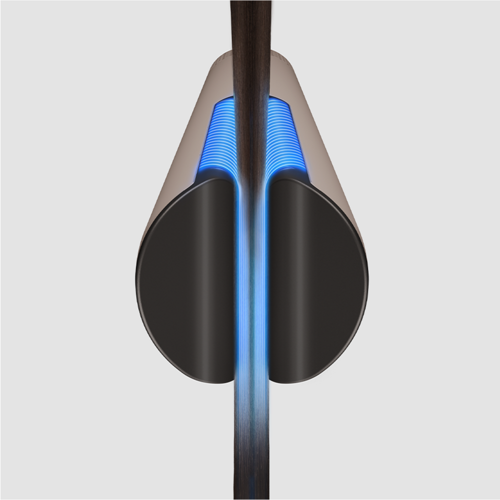 Фен-выпрямитель сочетает в себе передовые технологии укладки и бережного выпрямления волос. Мощный направленный поток создает зону низкого давления, мягко «затягивая» пряди в воздушную прослойку между пластинами. Волосы свободно парят в потоке нагретого воздуха, который ускоряет испарение влаги и одновременно разглаживает кутикулу за счет оптимального натяжения прядей. В отличие от обычных выпрямителей, фен бережно ухаживает за волосами, от корней до кончиков делая их гладкими и послушными, как после салонного ламинирования.