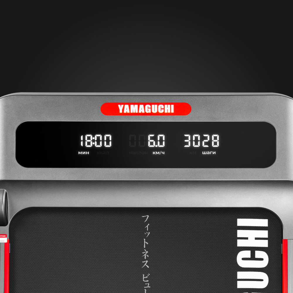 Обновлённая система индикации включает два экрана: светодиодный дисплей в раме и сенсорный дисплей в поручне. На них отображаются ключевые тренировочные параметры: общее количество шагов, пройденная дистанция, угол наклона, время, скорость и расход калорий. Благодаря наглядным показателям проще контролировать нагрузку и отслеживать прогресс.