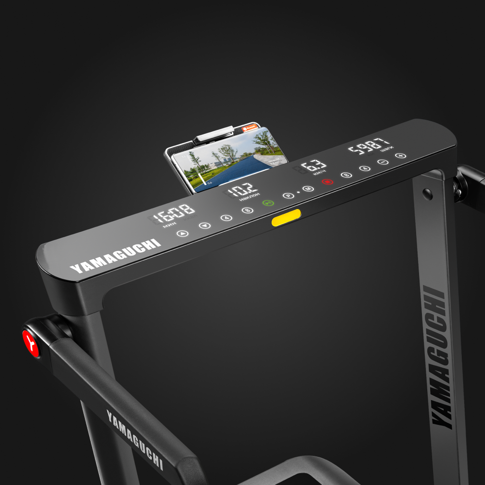 Подъёмный механизм Incline позволяет изменять угол наклона от 0 до 12°, имитируя естественный рельеф с перепадами высот. Чем выше наклон, тем интенсивнее нагрузка: можно тренироваться в режиме энергичной ходьбы или полноценных беговых тренировок, прокачивая разные группы мышц и увеличивая расход калорий.
