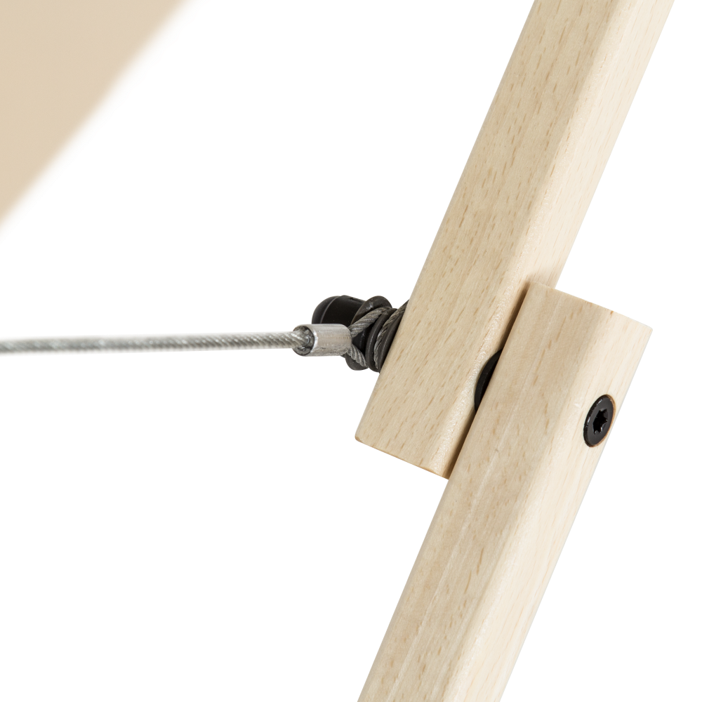 Конструкция: Усилители в раме; эластичный шнур предотвращает попадание троса между секциями при складывании